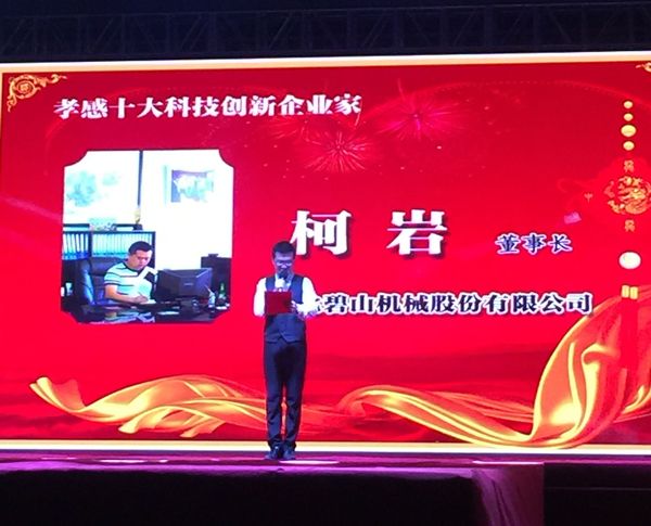 2015年8月8日晚,孝感市人民廣場上,華麗的鎂光燈璀璨,人聲鼎沸?!笆讓眯⒏惺蠼?jīng)濟(jì)領(lǐng)軍人物”頒獎(jiǎng)活動(dòng)在此舉行,10家孝感十大最具影響力企業(yè)、10名孝感十大科技創(chuàng)新企業(yè)家、10位孝感十大經(jīng)濟(jì)領(lǐng)軍人物依次上臺(tái)領(lǐng)獎(jiǎng)。湖北碧山機(jī)械股份有限公司榜上有名,碧山機(jī)械股份有限公司董事長柯巖先生也被評(píng)為孝感十大科技創(chuàng)新企業(yè)家。